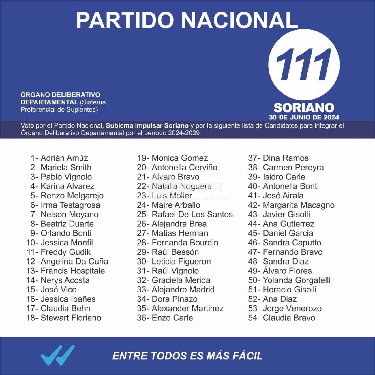 Esta es nuestra lista oficial para la Departamental, es fundamental para los que quieren un cambio real en Soriano que nos voten en la interna para poder ser candidatos a Intendente.
