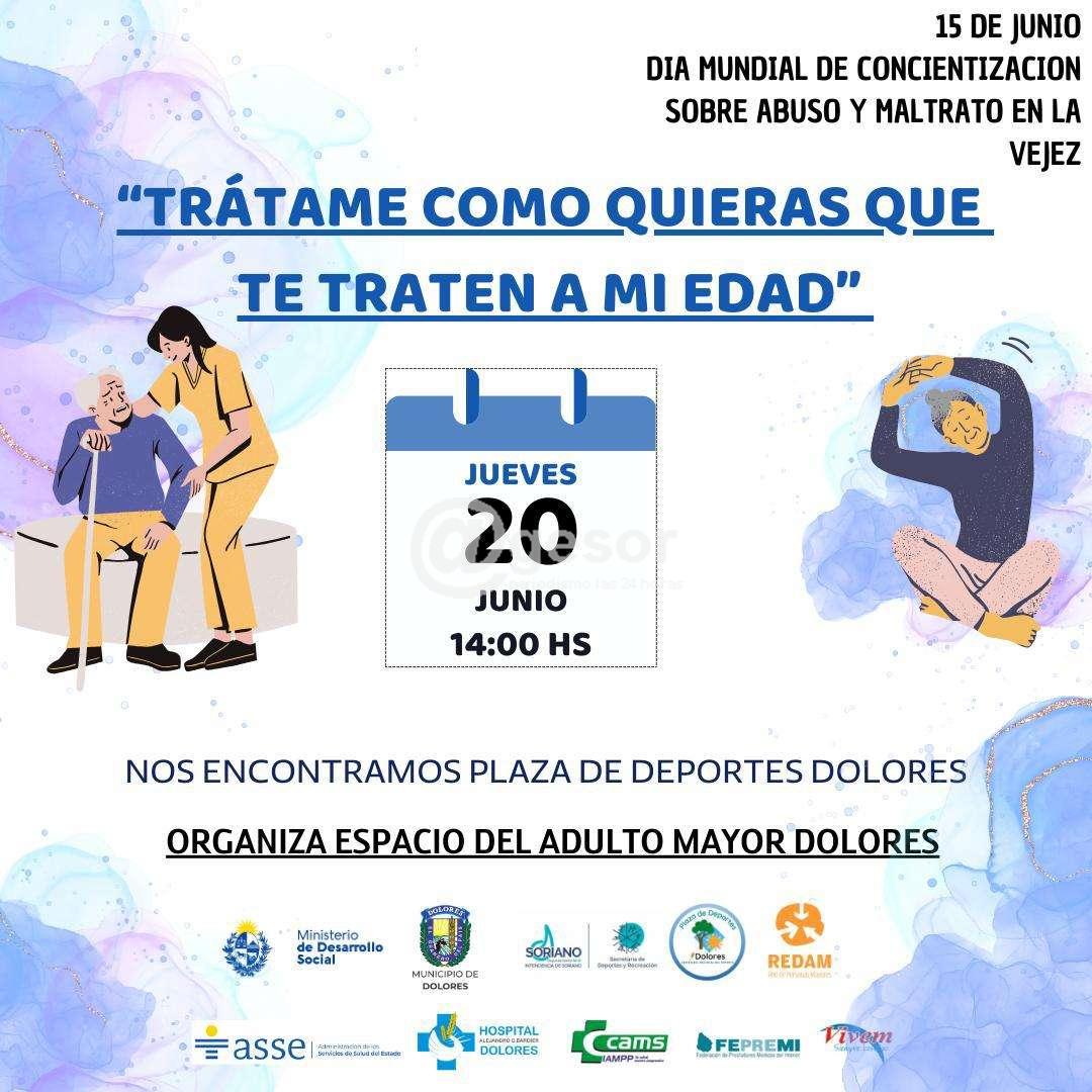 Actividad en el marco del Día Mundial de Concientización sobre Abuso y Maltrato en la Vejez que se conmemora el 15 de junio, "Trátame como quieras que te traten a mi edad", en este caso, la jornada se desarrolla en Dolores este 20 de junio a las 14.00 horas