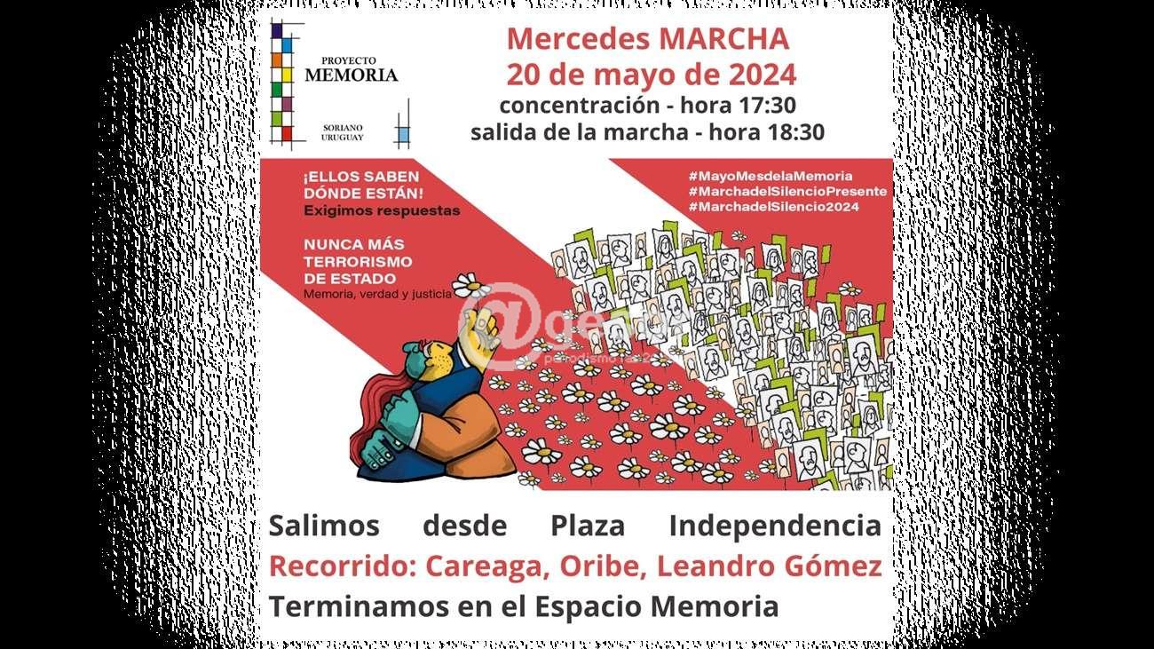 El lunes 20 de mayo se realiza una nueva Marcha del Silencio. En Mercedes es organizada por la Comisión Memoria, Justicia y contra la Impunidad de Soriano.