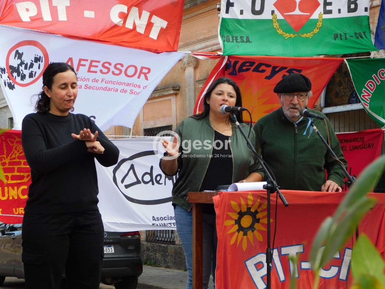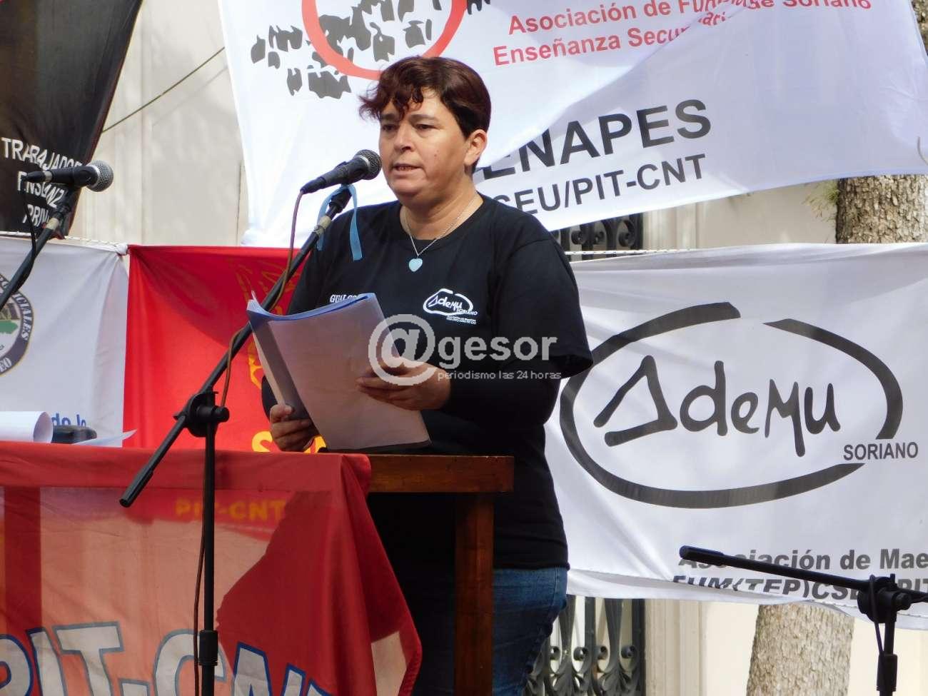 La representación de ADEMU (Asociación de Maestros del Uruguay) filial Soriano, este 1º de Mayo en el acto del Día de los Trabajadores fue asumida por la Presidenta del sindicato, Walconda Espinosa, quien expuso sobre la realidad de este sector de la enseñanza.