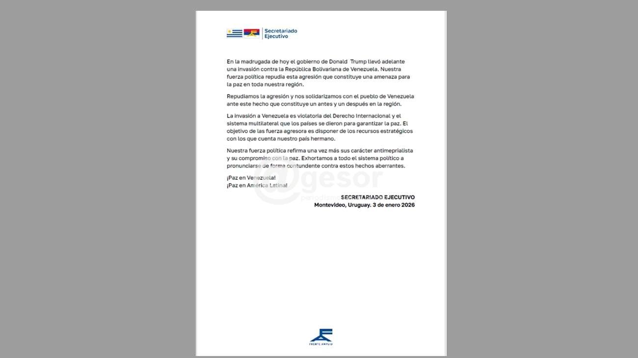 En la madrugada de hoy el gobierno de Donald Trump llevó adelante una invasión contra la República Bolivariana de Venezuela. Nuestra fuerza política repudia esta agresión que constituye una amenaza para