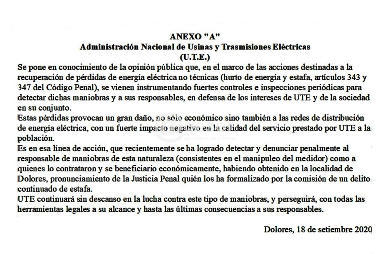 Se pone en conocimiento de la opinión pública que, en el marco de las acciones destinadas a la recuperación de pérdidas de energ&...