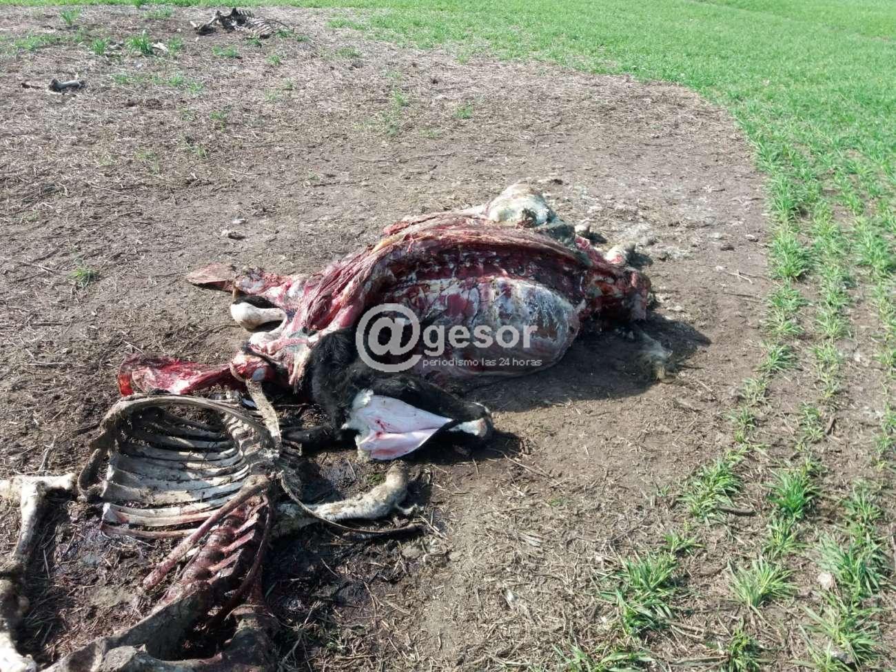 En la noche del lunes desconocidos ingresaron a su campo para matarle 4 vacunos. A tres de ellos, como lo muestran las fotografías les llevaron las pulpas, dejando cuero y espinazo tirados en el lugar, y al restante lo mataron sin llevarle nada.