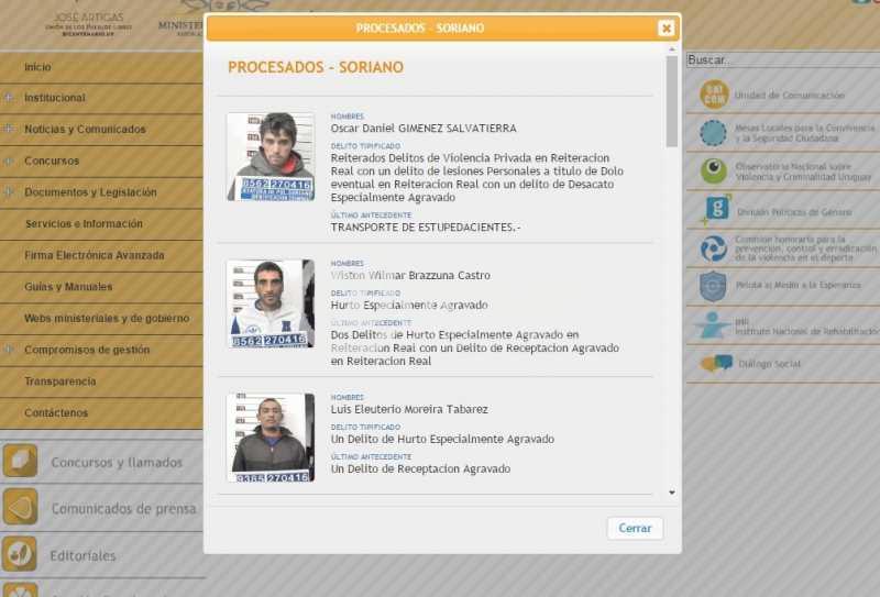 El Ministerio del Interior dio a conocer fotografías de nuevos procesados en Soriano, recordando que para ello se tiene en cuenta que la persona tenga antecedentes.
