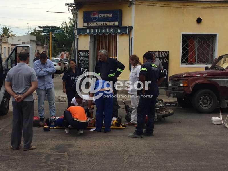 Accidente de tránsito protagonizado por una camioneta y una moto dejó el saldo de una persona lesionada.