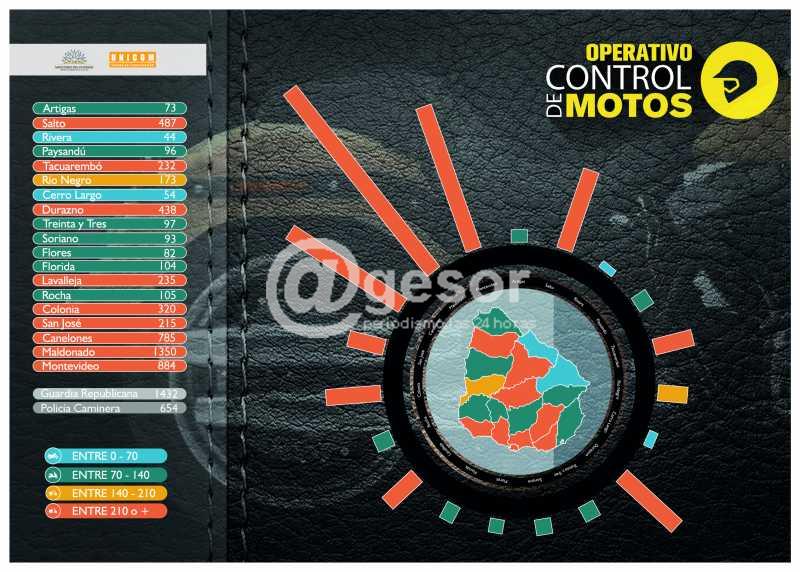 En el presente mes de enero de 2016, la Jefatura de Policía de Canelones lleva 879 motos inspeccionadas y 16 incautadas por anomalías como la circulación sin documentos de propiedad, la no coincidencia y borrado de la numeración de motor y chasis, conducir sin libreta, no usar casco ni protección o chaleco refl...