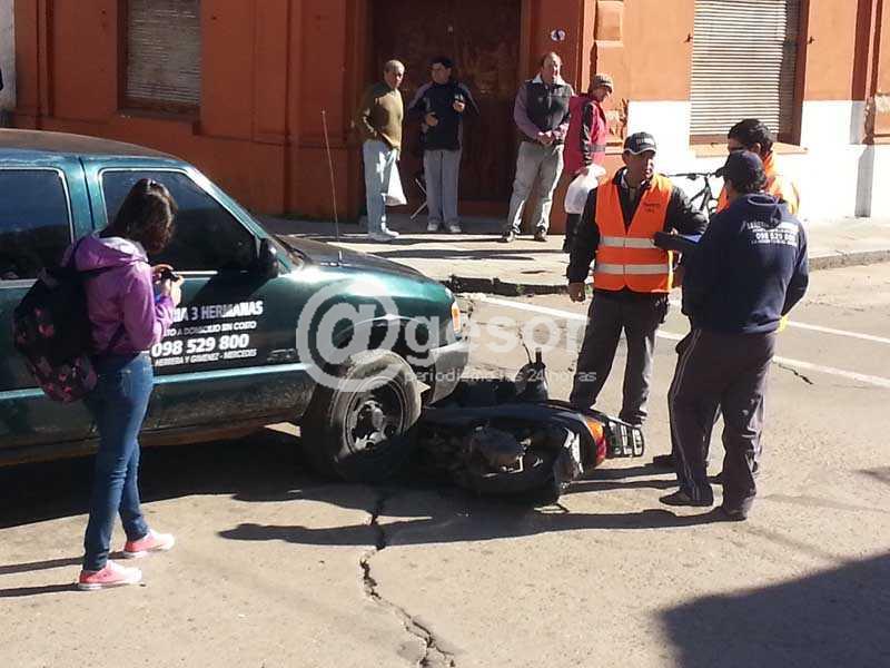 Minutos antes de las 11.00 horas de este martes se produjo colisión en la intersección de Oribe y Ansina, entre la moto Baccio 70 cc matrícula KMW 697 guiada por Juan Francisco Herrera trabajador del servicio delibery de carnicería, que circulaba por Oribe al Norte y la camioneta Mitsubishi RAL 1303 de la empresa Alis...
