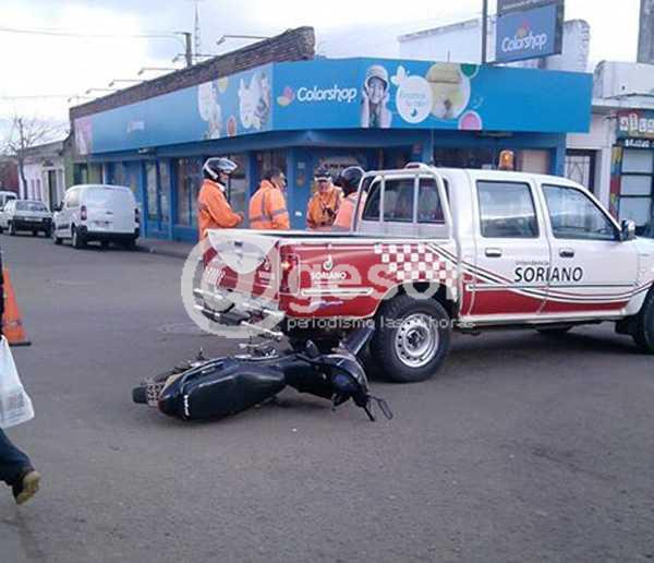 Una camioneta y una moto chocaron sobre horas del mediodía de este lunes, en la intersección de calles Artigas y Sánchez de la ciudad de Mercedes. Por Artigas se dirigía la camioneta Chevrolet matrícula SBA- 6040, conducida por Julio Fernández, mientras que por Sánchez lo hacía la moto Suzu...