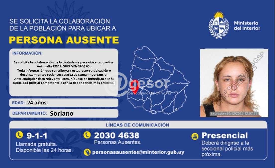 Con hora 00:10 del día 15 de diciembre de 2025, la Policía tomó conocimiento de un hurto en casa de familia ocurrido en una finca ubicada en Ruta 21 y Rivera, jurisdicción de Seccional Quinta, en la ciudad de Dolores, hecho que se habría producido entre las 19:20 y las 23:30 horas del 14 de diciembre de 2025....