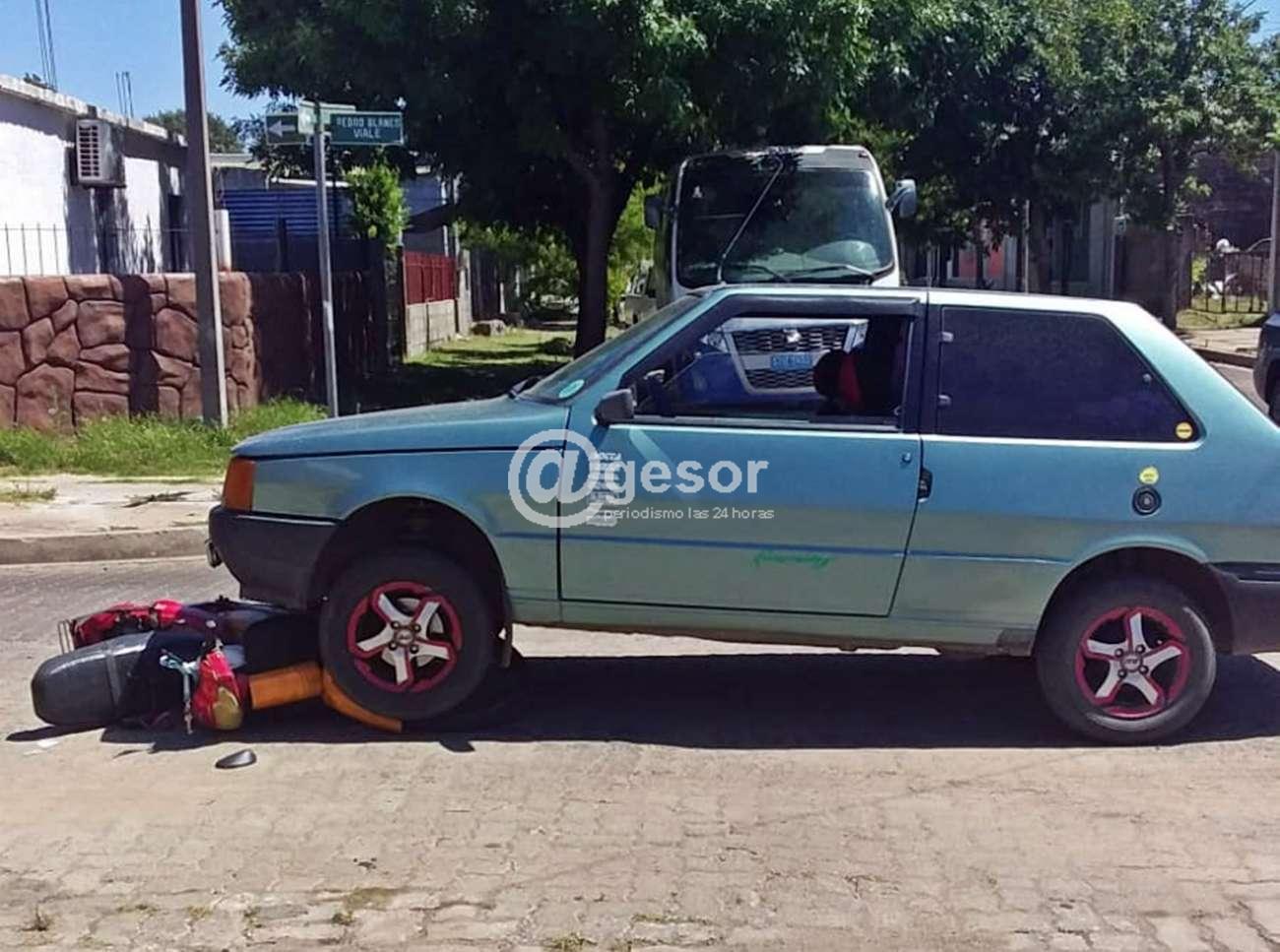 En la intersección de Blanes Viale y Tomás Gómez se produjo colisión entre automóvil y una moto que dejó como saldo el conductor del vehículo menor lesionado.