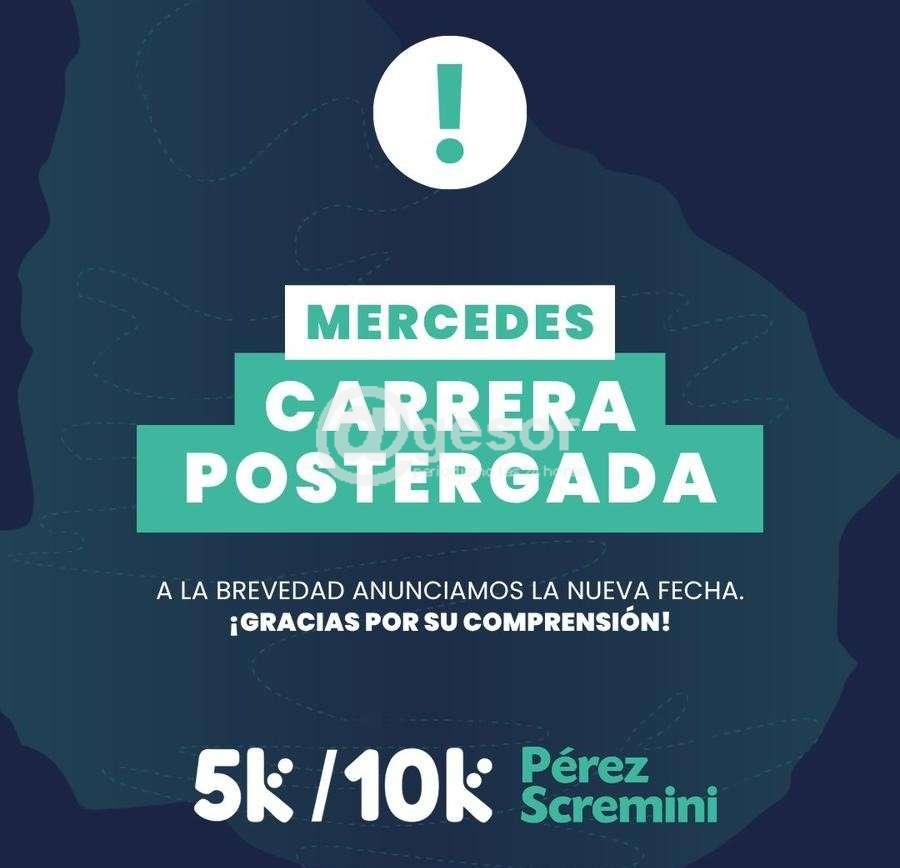 Desde la organización local se informa uqe se decidió suspender la carrera de este domingo 5 de setiembre de la Fybdación Pérez Scremini por pronóstico de mal tiempo.