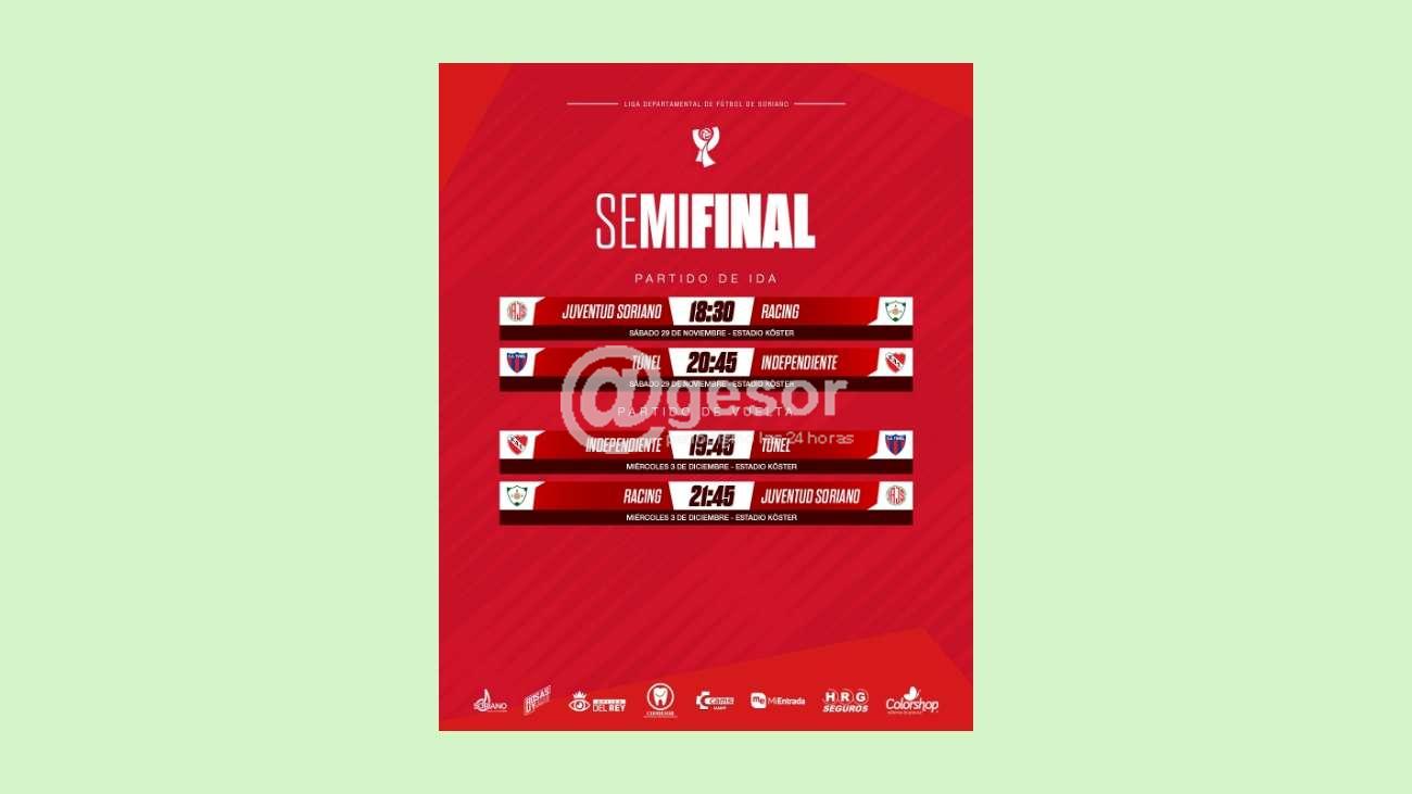 Mañana se estarán jugando los partidos de semifinales de vuelta entre Independiente y Túnel desde 19 y 45 horas en el Koster. En dicho partido deberá ganar el equipo de Túnel para acceder a la gran final. El primer partido fue empate 1 a 1. Mientras que a segunda hora jugarán Racing y Juventus desde las ...