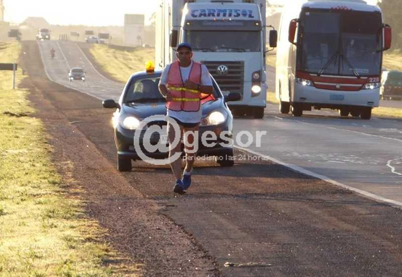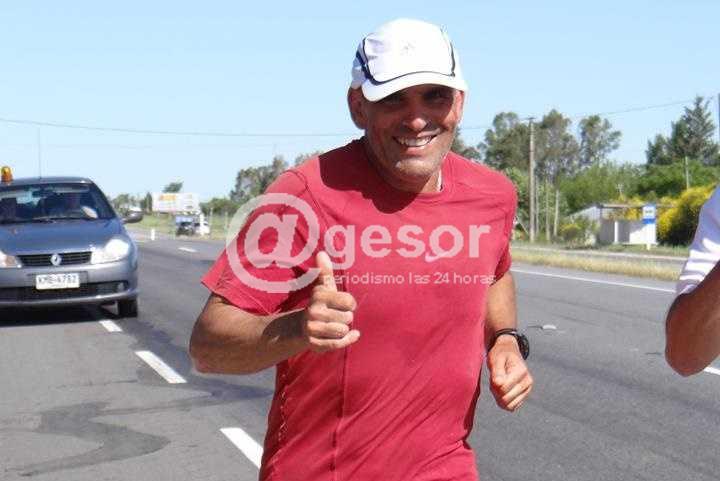 En un esfuerzo casi sobrehumano, y con una temperatura cercana a los 30 grados, Rodney Cuestas atraviesa corriendo el departamento de Soriano en la calurosa tarde de este sábado 12 de noviembre, en el tercer día de su desafío, para llegar a Mercedes y poner punto final a un recorrido que comenzó el jueves a la madruga...