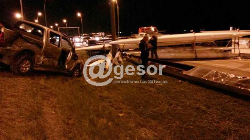 Lesionados leves dejó un siniestro de tránsito registrado en la ruta 1, en los accesos de Montevideo (kilómetro 23), en la noche de este viernes, cuando volcó una camioneta transportaba a una delegación delegación de la Federación Uruguaya de Remo, tirando un remolque con botes de competició...