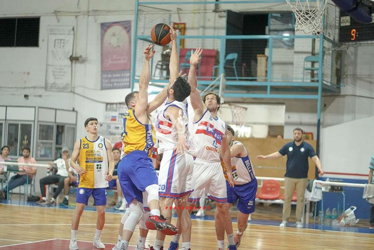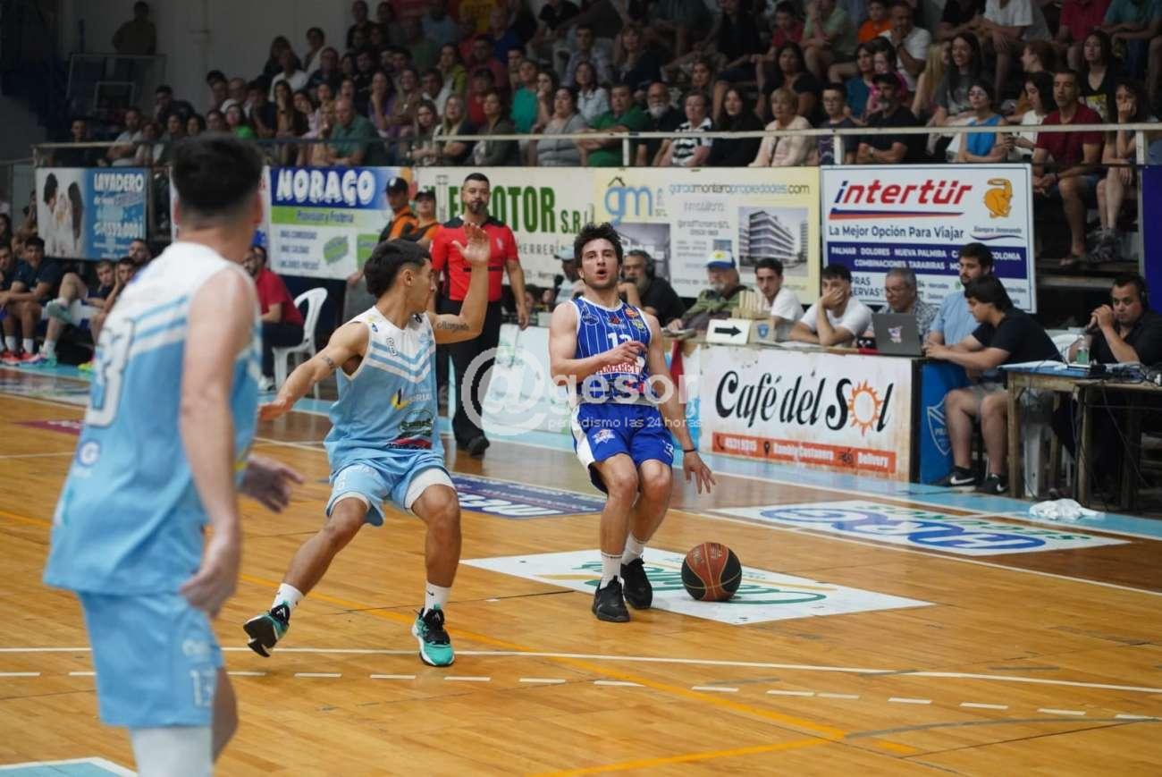 Jugando en el gimnasio "Coloso Tricolor" de Fray Bentos, Nacional local, venció en los últimos segundos a Bella Vista de Dolores, con un triple de Damián Blazina, 65 a 62, que pudo terminar empatado con un triple que marró en el lanzamiento final de los papales.
