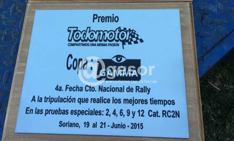 El premio Todomotor, Copa Grupo Gamma fue ganada por el binomio Rodrigo Zeballos y Sebastián Dotta sobre el Mitsubishi Evo X, instituido para la tripulación que realizara los mejores premios en las pruebas especiales: 2, 4, 6, 9 y 12 categoría RC2N en la cuarta fecha del Campeonato Nacional de Rally....