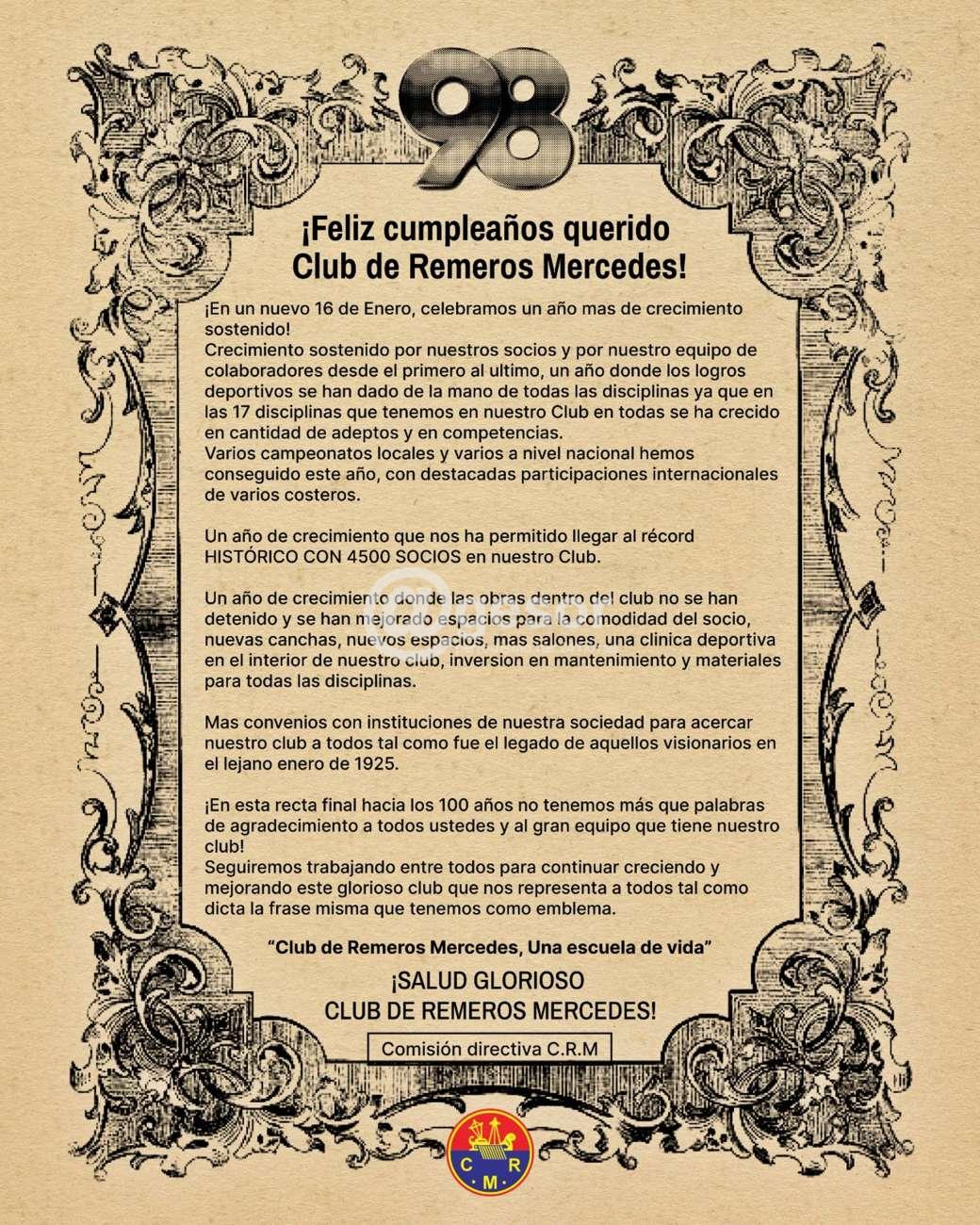 Este lunes 16 de enero, el Club Remeros de Mercedes está cumpliendo 98 años de vida institucional, por separado damos el mensaje de la Comisión Directiva y a su vez @gesor mantuvo mano a mano con el Presidente del Club, Alfredo Testagrossa, para hablar de este presente, de aquellos que forjaron el club y del...