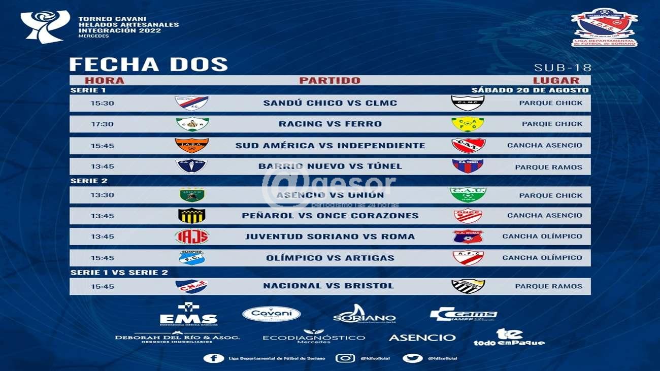 Los partidos de la categoría sub 18 del fútbol de Mercedes quedaron fijados para el sábado 21 de agosto en cuatro escenarios: Parque Chick, cancha de Ansencio, Parque Ramos y cancha de Olímpico.