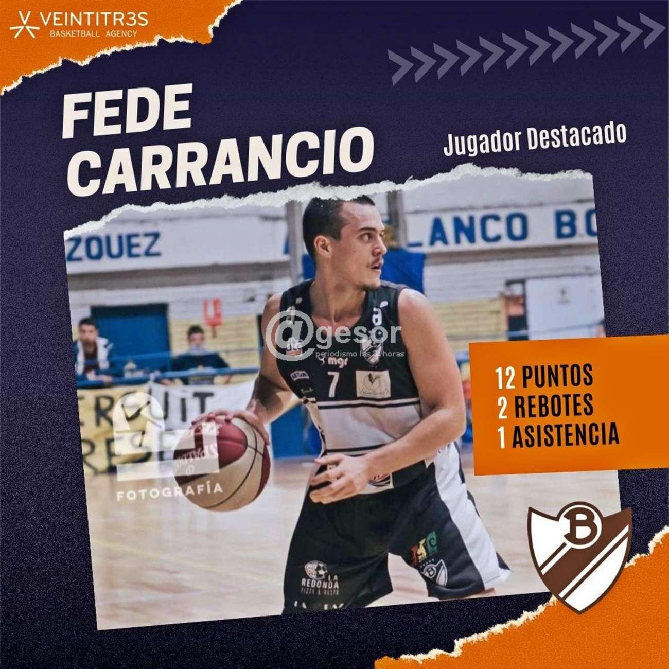 VEINTITR3S BASKETBALL AGENCY destaca a Fede por sus 12 puntos, 2 rebotes y 1 asistencia, que ayudaron en la victoria 83 a 78 albimarrón ante Capurro.