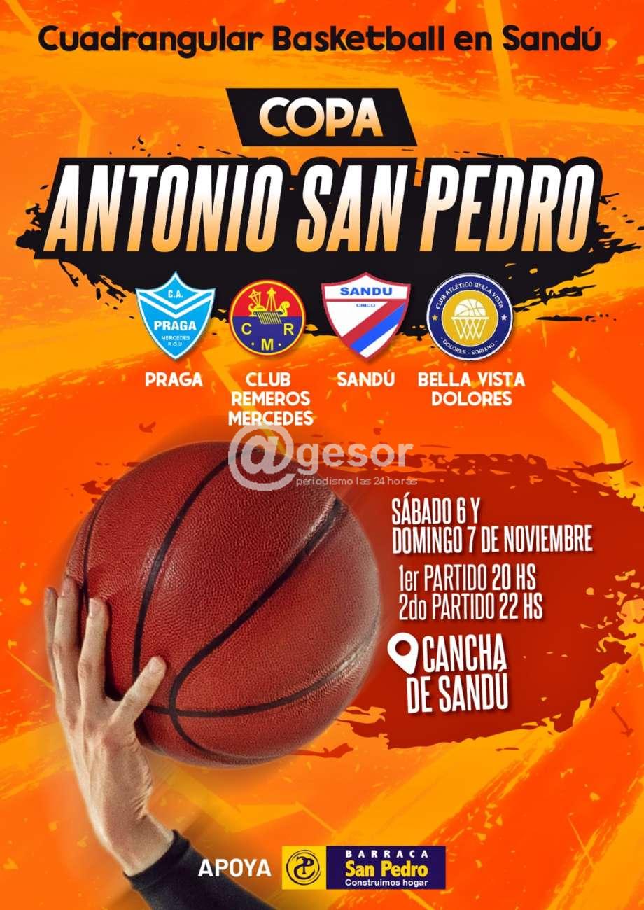 Este sábado 6 y domingo 7 estará disputándose cuadrangular de básquetbol organizado por Sandú Chico F.C. en el gimnasio "Luis Alvarez" con la participación de los equipos de Praga, Remeros, Sandú y Bella Vista de Dolores, poniéndose en juego la Copa "Antonio San Pedro"....