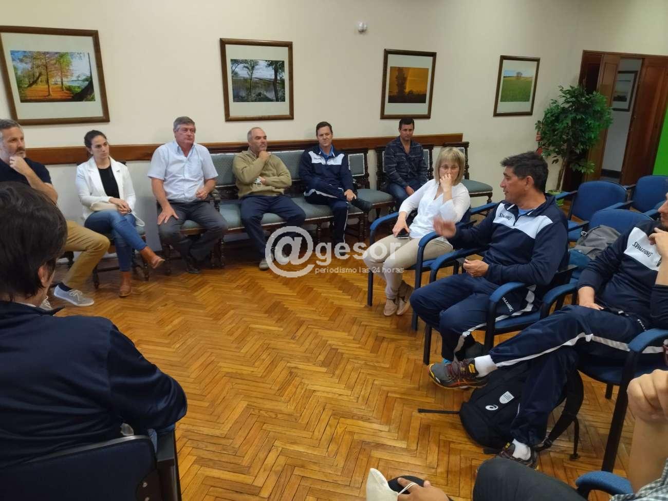 Este viernes el Intendente Guillermo Besozzi, acompañado de la Directora de Deporte Noemí Viera, recibió a delegación de la Federación Uruguaya de Básquetbol encabezada por cuerpo de entrenadores de la selecciones formativas de Uruguay y en paarticular por Marcelo Capalbo y la Liga Regional de Bás...