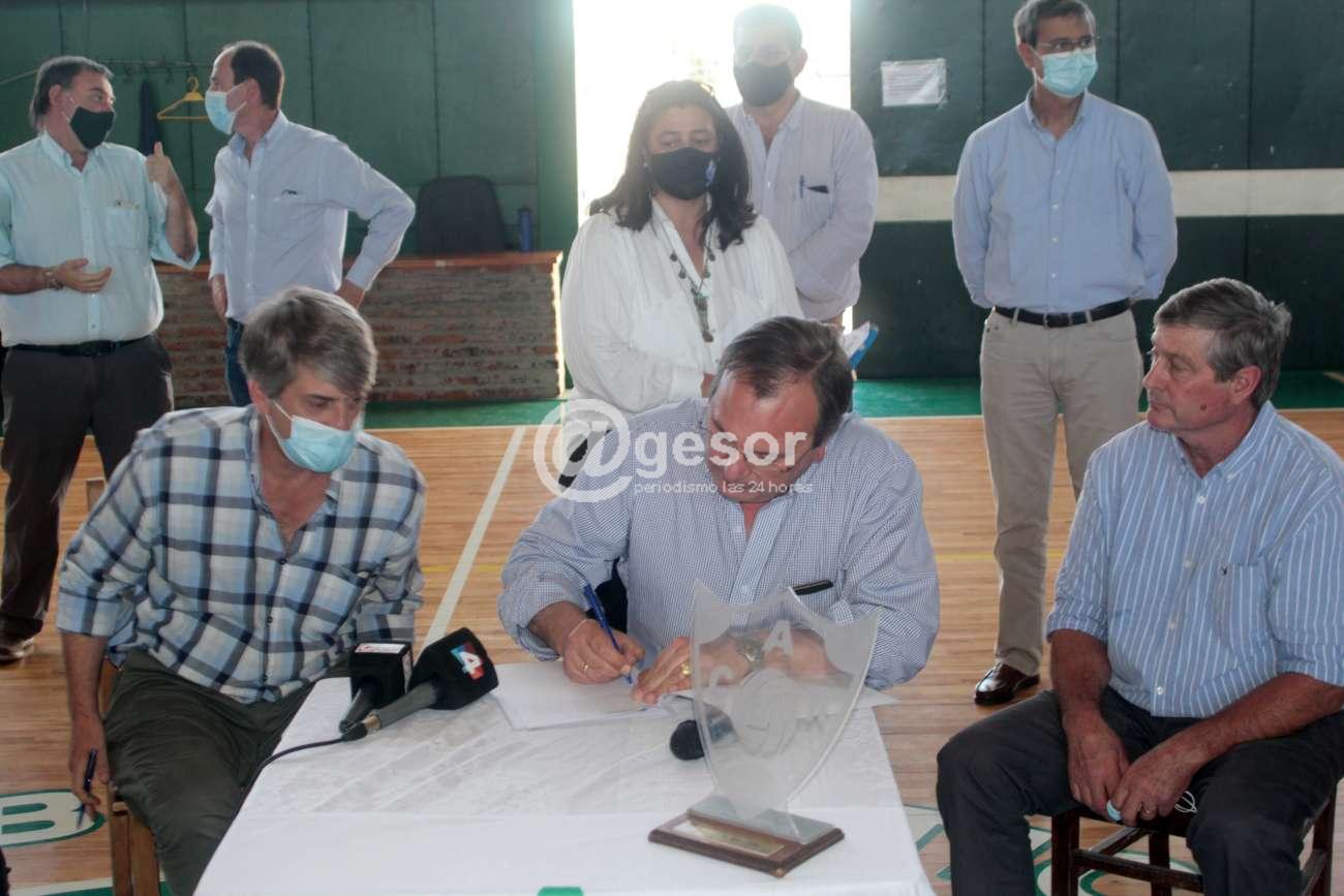 El Ministro de Transporte y Obras Públicas, Jossé Luis Falero, realizó firma de convenios sociales con dos instituciones deportivas de Mercedes, el Club Racing y el Club de Remeros, pero a la vez también visitó el Club Praga y mantuvo encuentro con el Intendente de Soriano, Guillermo Besozzi.