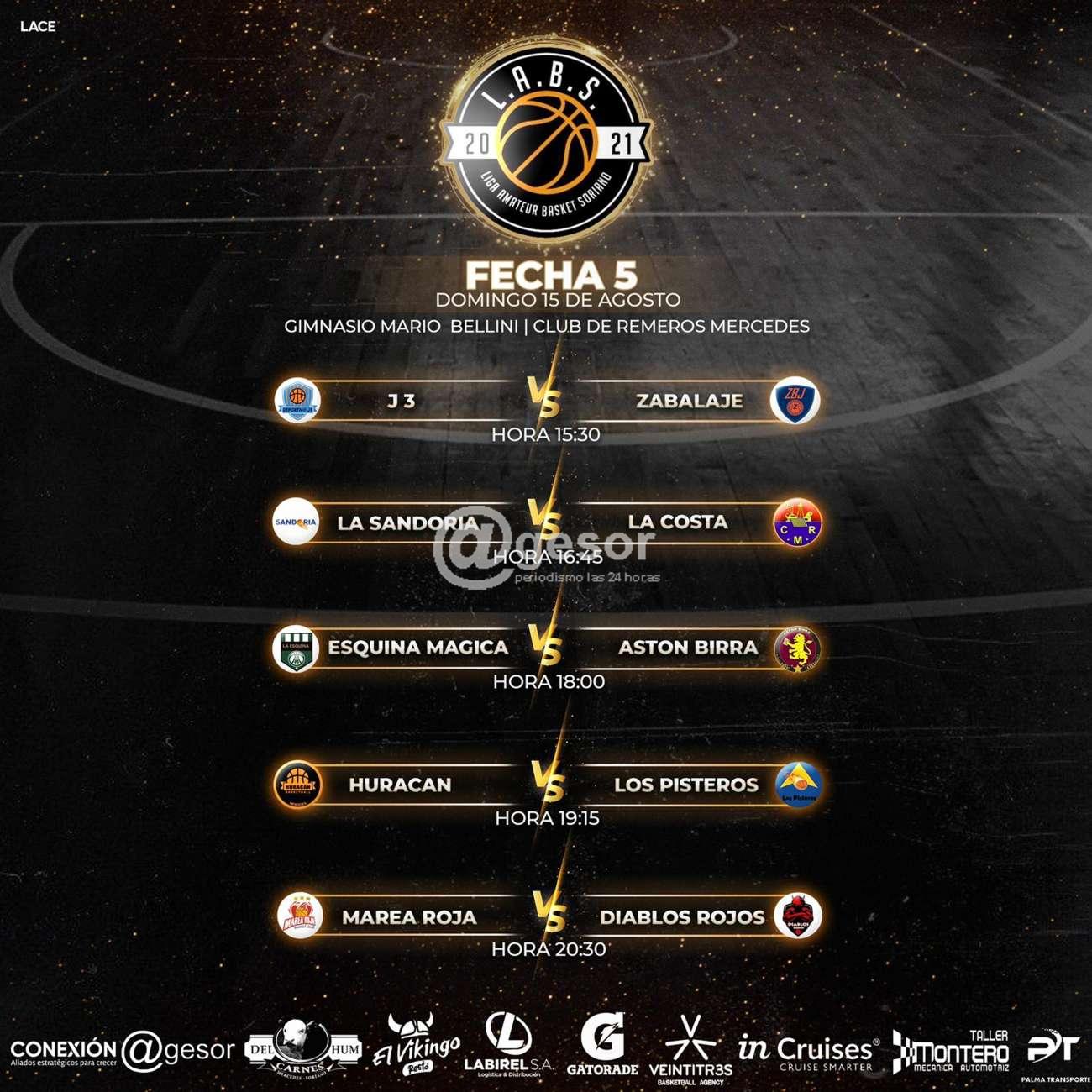 Concluyó la quinta fecha del torneo de la Liga Amateur de Basket que se disputó este domingo en el gimnasio "Mario E. Bellini" del Club Remeros Mercedes, jornada que tenía como gran atractivo el cierre con el encuentro que enfrentaba a los dos lídees invictos del campeonato, Marea Roja y Diablos Rojos....