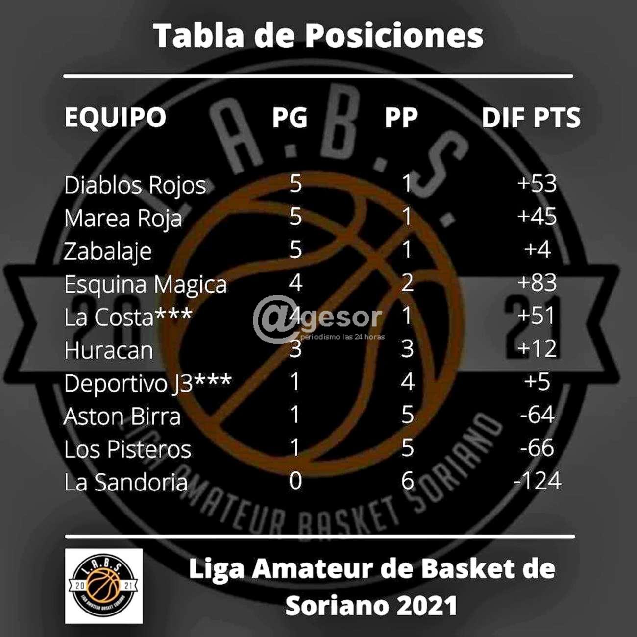 Este domingo 15 se disputa la quinta fecha del torneo de la Liga Amateur de Basket de Soriano, en el gimnasio "Mario E. Bellini" del Club Remeros Mercedes y que en esta jornada tendrá un partido que enfrentará a los dos líderes, únicos invictos al cierre de la cuarta fecha, nos referimos a Marea Roja y ...