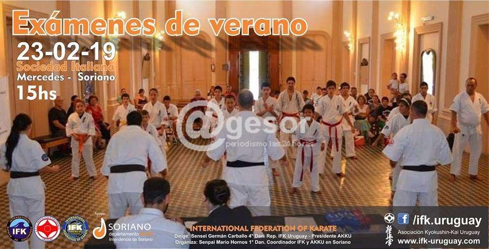 Con la Presencia de Sensei Germán Carballo 4to. dan (Pte. de IFK Uruguay), se celebrará la toma de exámenes para pasaje de grado a alumnos de Karate Kyokushin en Soriano (Yantsu Dojo de Mercedes y Kanku Dojo de Dolores) el próximo sábado 23 de febrero, correspondiente al primer período del año 201...