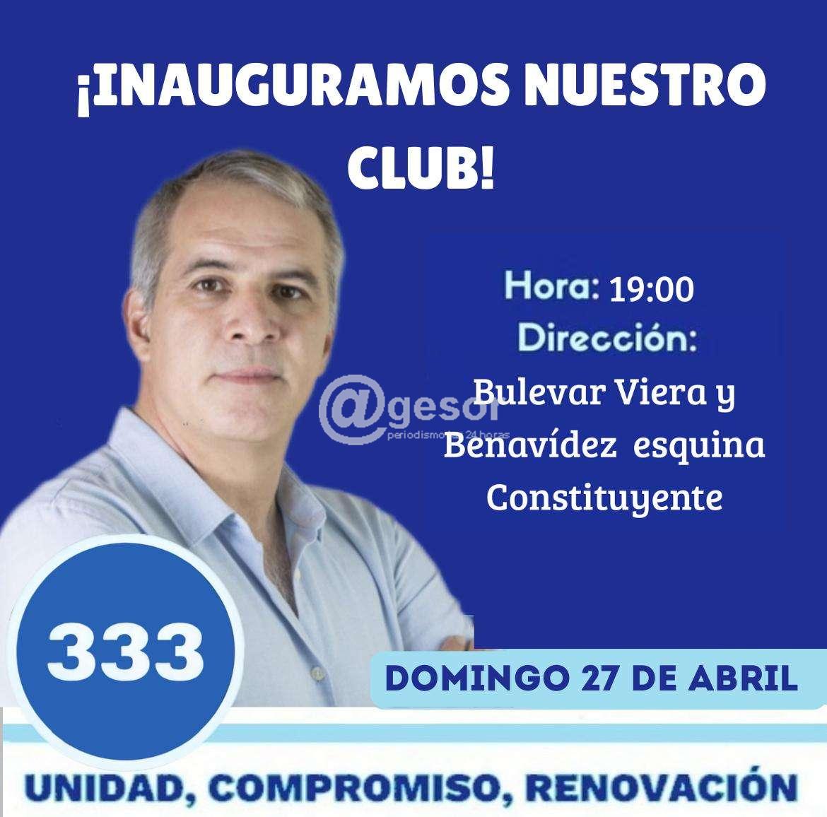 Este domingo 27 se inaugura el baluarte de la Lista 333 en el bulevar Viera y Benavídez esquina Constituyente a las 19.00 horas