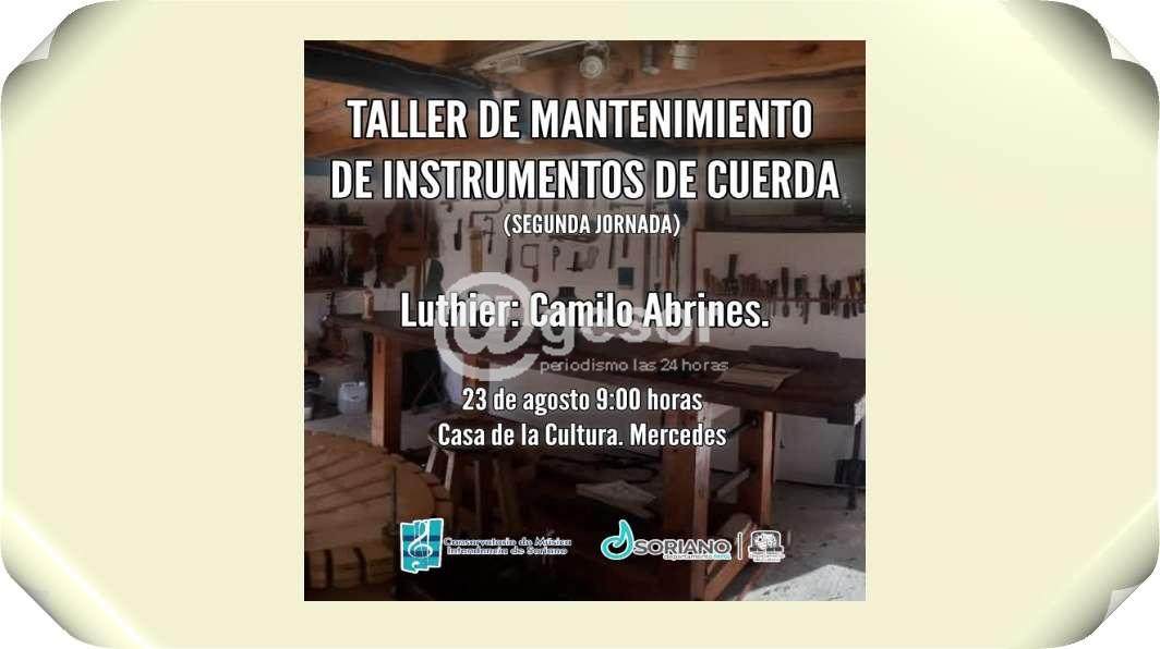 El luthier Camilo Abrines estará brindando, en Mercedes, el segundo taller de mantenimiento de cuerdas. Será el sábado 23 de agosto, a partir de las 9 horas, en Casa de la Cultuyra.