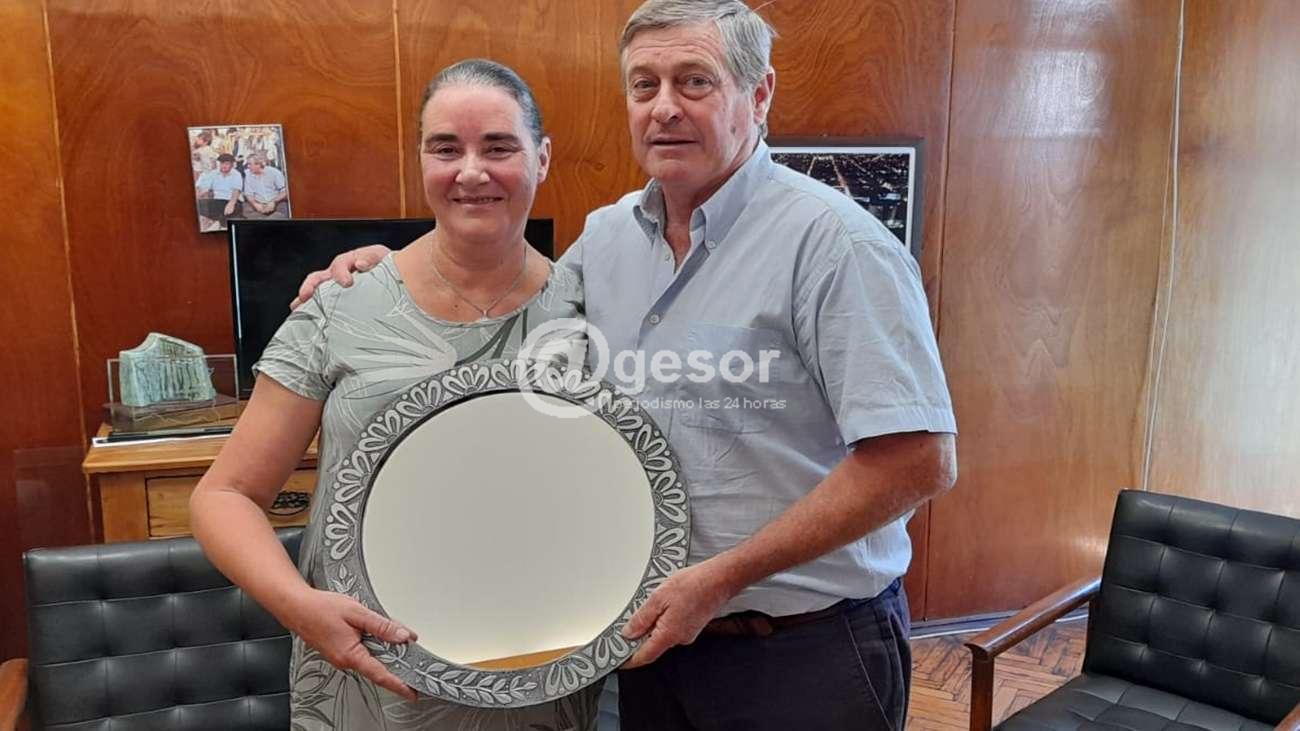 El Intendente Guillermo Besozzi entregó un presente a la Maestra Elena Mayero, quien recientemente se jubiló.
