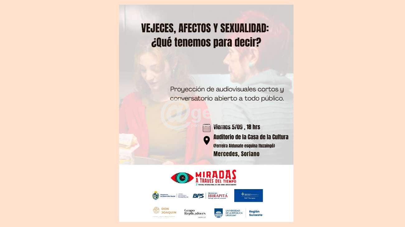 La propuesta incluye la proyección de cortos audiovisuales y una conversación abierta sobre vejeces, afectos y sexualidad. Forma parte del ciclo “Miradas a través del tiempo”, en el marco del tercer encuentro nacional sobre envejecimiento y vejez. Apoyan: MIDES, INMAYORES, ASSE y otras institu...