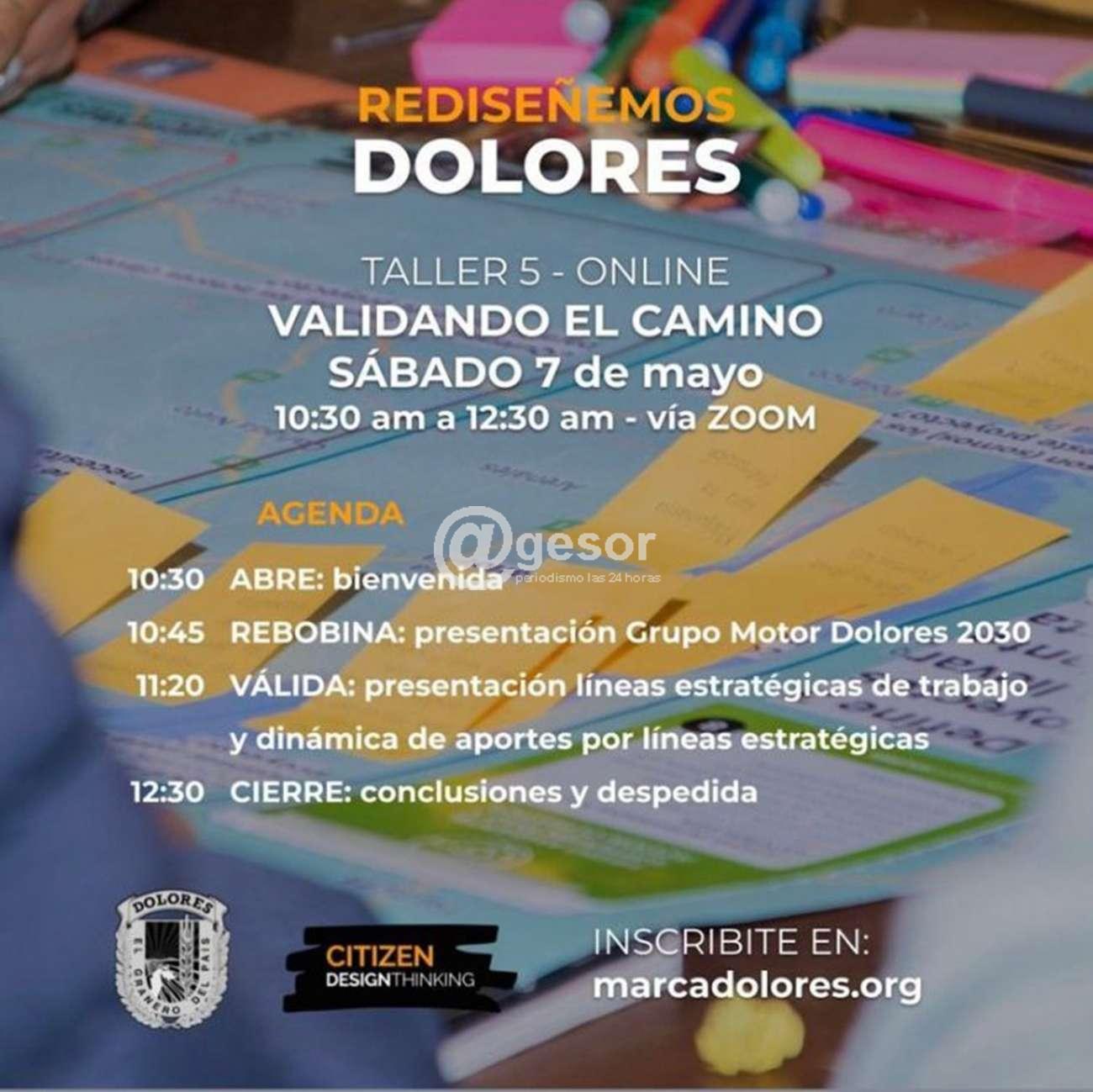 Este sábado 7 se llevará a cabo el taller 5 del programa Rediseñemos Dolores, será de 10.30 a 12.30 horas vía Zoom.