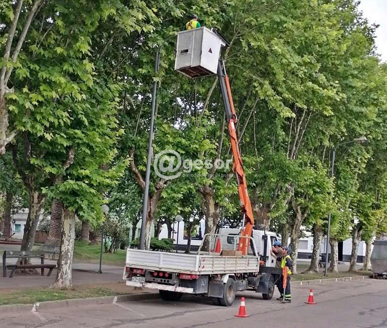 En la periferia de la plaza Artigas de Dolores se colocaron 16 focos pasando de sodio a LED marca Serlux, apostando a un mejor y más eficiente uso de la energía.