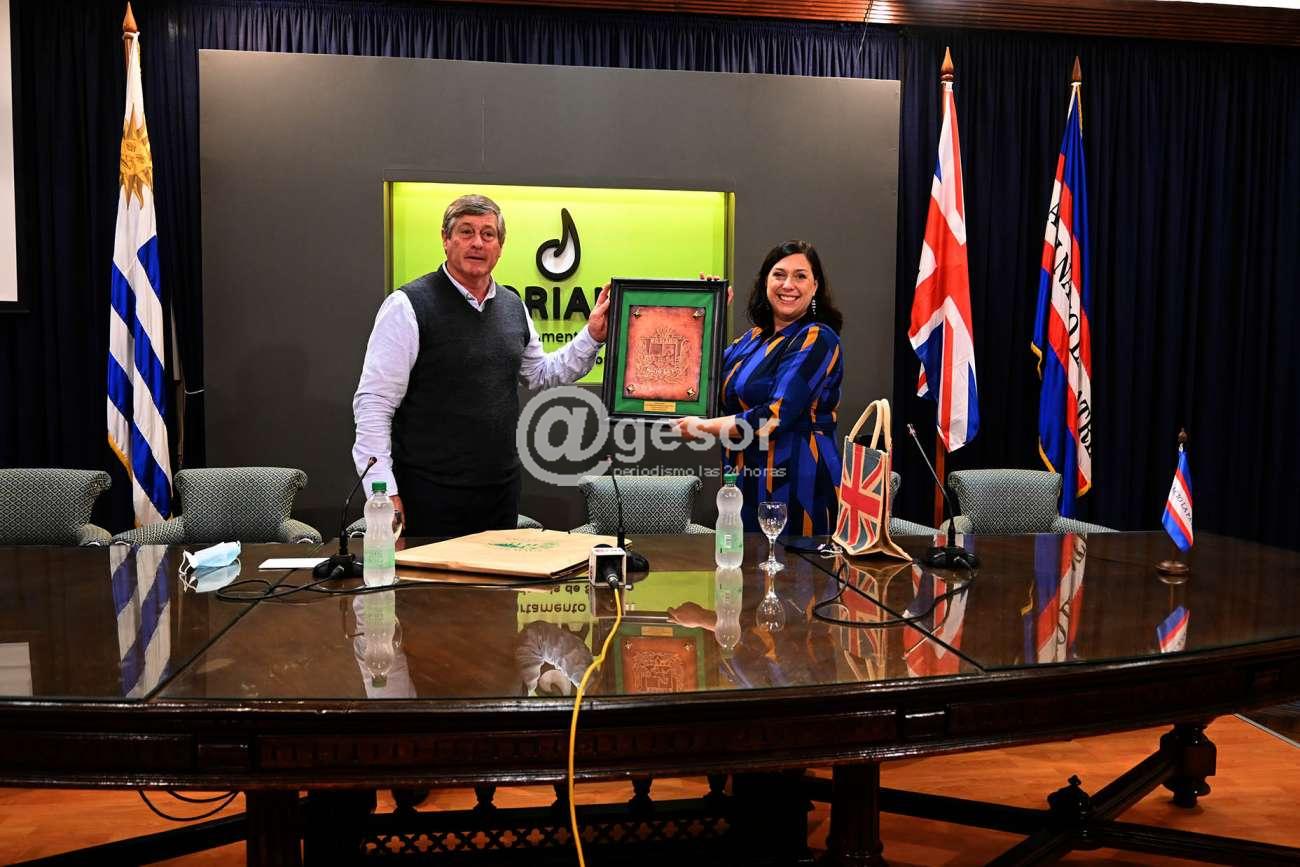 Durante la visita se desarrolló una reunión en el despacho del jefe comunal en la que se abordaron aspectos que apuntan a fortalecer el vínculo entre Soriano y Gran Bretaña.