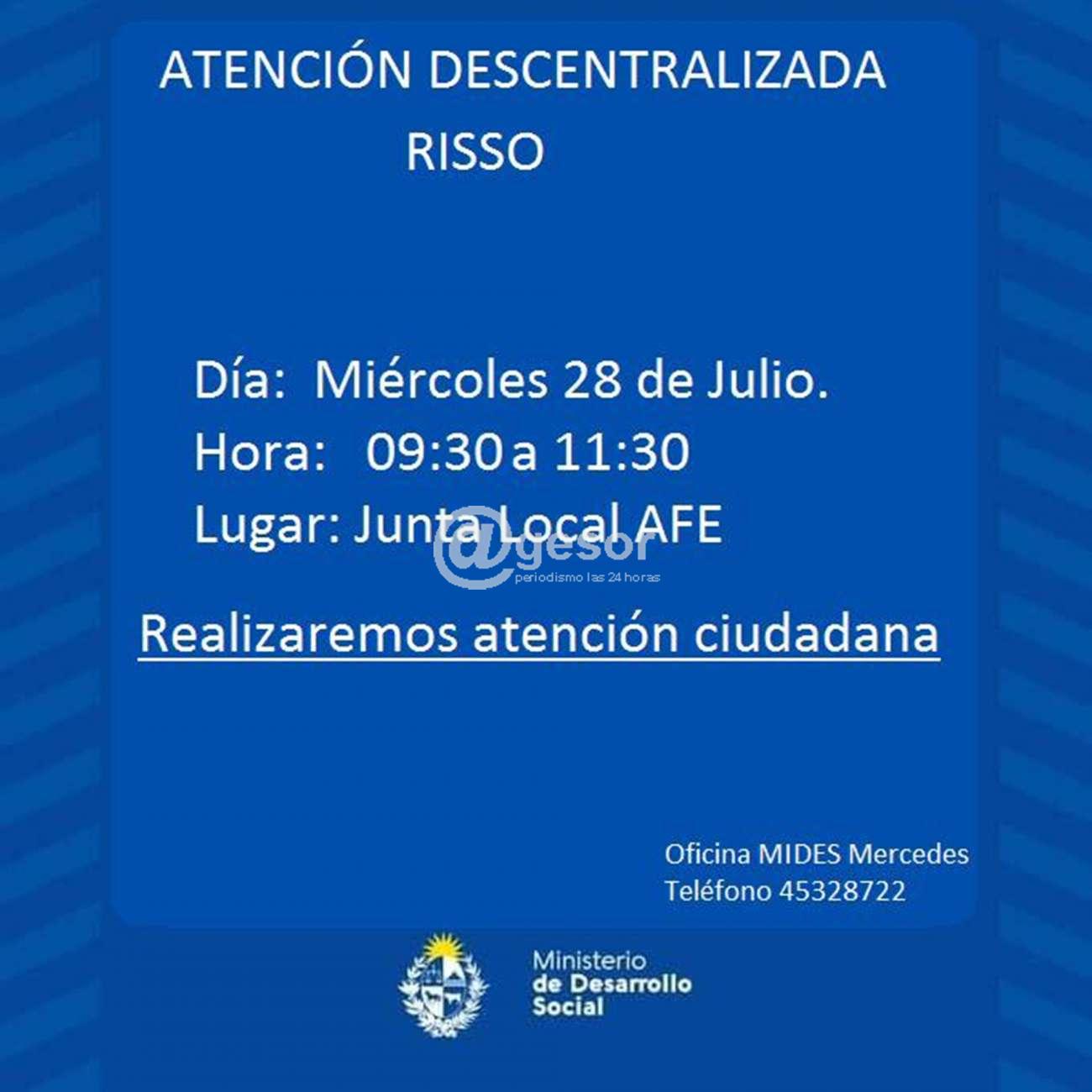 En Risso se estará atendiendo entre las 9,30 y las 111,30 horas , en oficinas de la Junta Local, en la ex Estación d...