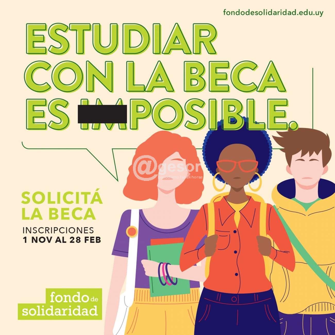 A partir de 1º de noviembre están abiertas las inscripciones para solicitar y renovar la beca del Fondo de Solidaridad para el año 2021. Toda la solicitud se realiza en línea en el Portal de Estudiantes (becas.fondodesolidaridad.edu.uy).