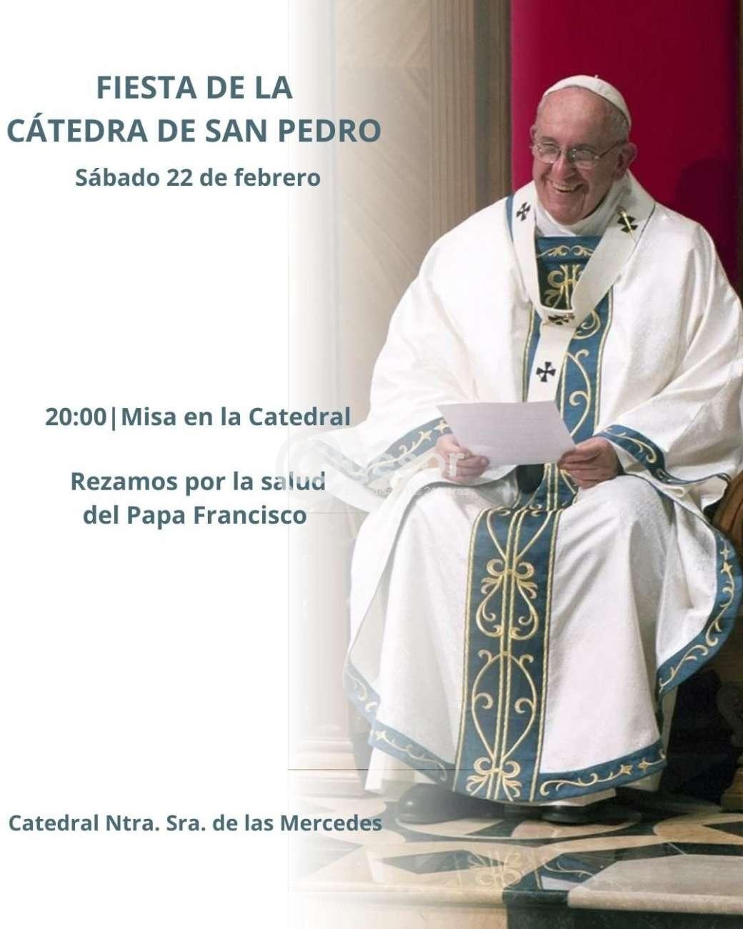 En el marco de la Fiesta de la Cátedra de San Pedro, este sábado 22 de febrero se realizará a las 20.00 horas en la Catedral Nuestra Señora de las Mercedes, misa con rezo por la salud del Papa Francisco....