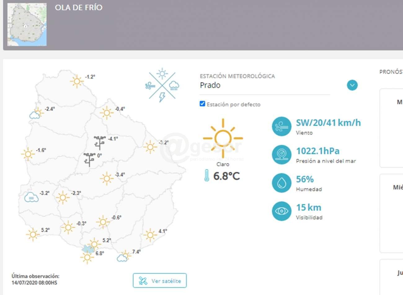 -4.8 ºC Tacuarembó-4.8 ºC Trinidad-4.6 ºC Florida-4.4 ºC Mercedes-4.3 ºC Rivera-4.2 ºC Durazno-3.8 ºC Mel...