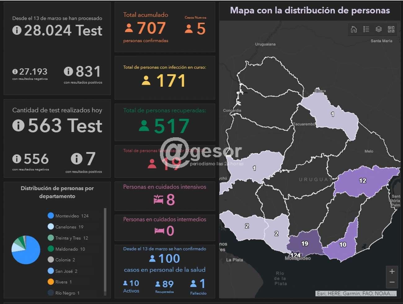 El SINAE informó este lunes 4 de mayo que ya son 657 los casos positivos confirmados de Coronavirus COVID-19 en todo el territorio nacional. De ese total, 447 ya se recuperaron y 17 fallecieron.
