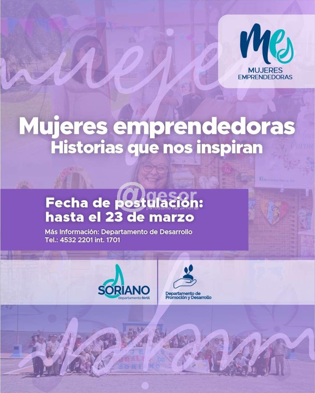 El departamento de Desarrollo de la Intendencia de Soriano invita a participar de la quinta edición de Mujeres Emprendedoras de Soriano.