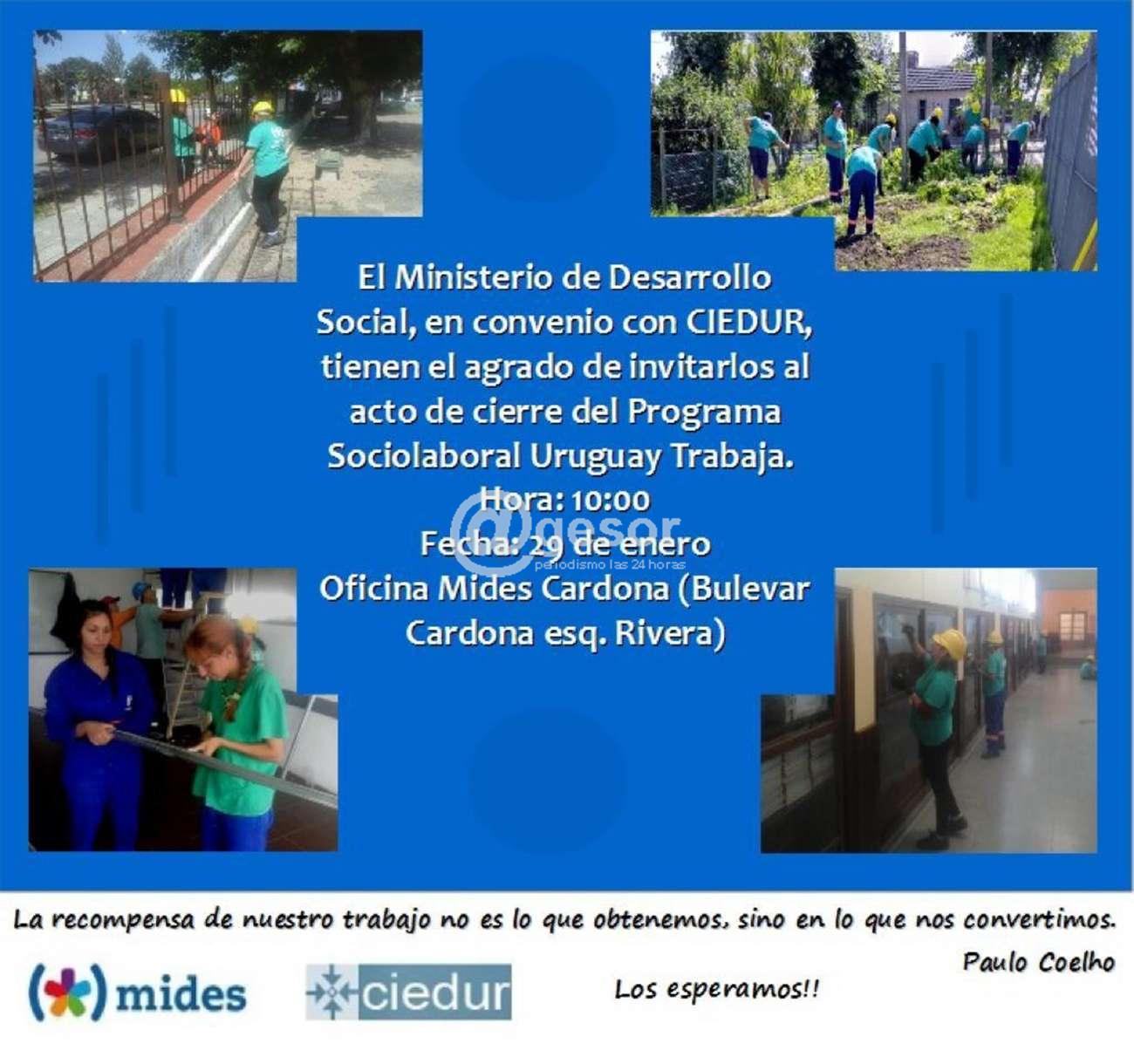 En la mañana de este martes 14 participantes del Programa Uruguay Trabaja de Cardona, edición 2018, dieron por culminado su ciclo recibiendo su diploma de reconocimiento por su excelente participación, así como por los conocimientos adquiridos.