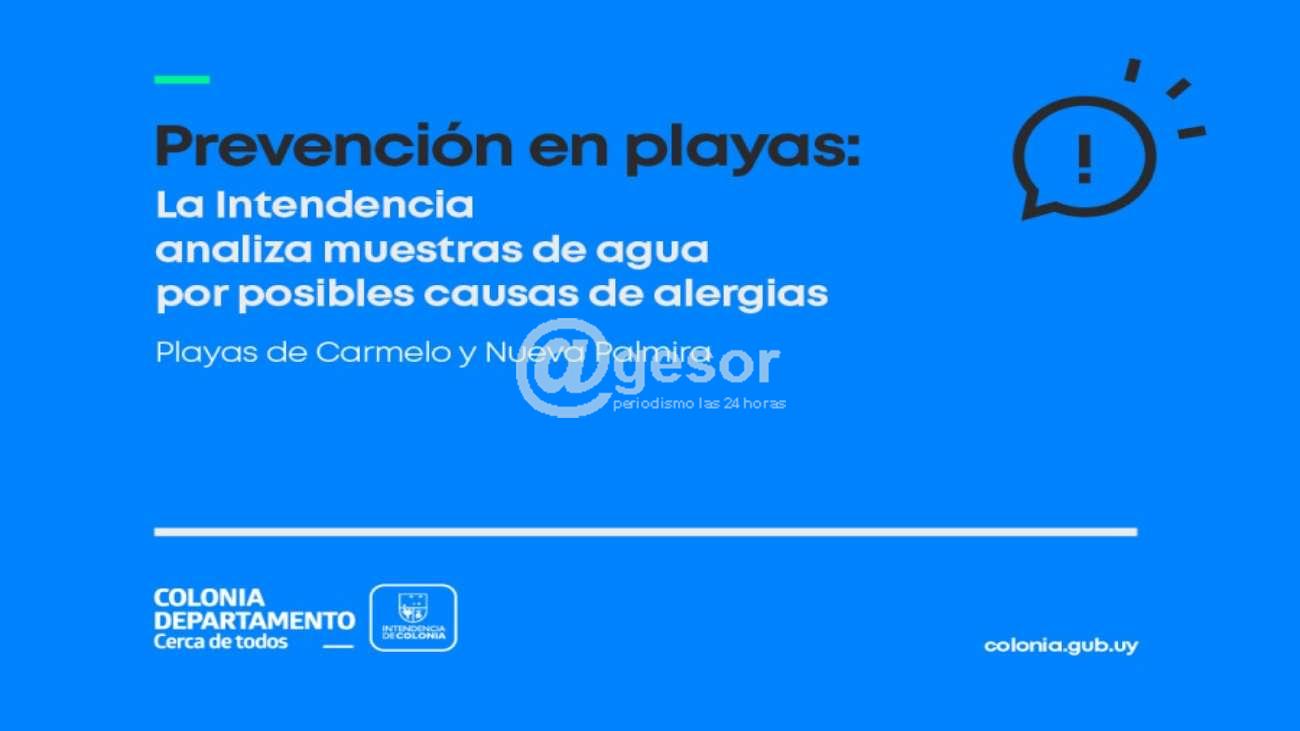 La Intendencia de Colonia informa que, a raíz de los casos reportados de reacciones alérgicas cutáneas en personas que concurrieron a las playas de las ciudades de Carmelo, Nueva Palmira, así como de situaciones similares notificadas en la Playa de la Agraciada, se ha dispuesto la extracción inmediata de muestr...