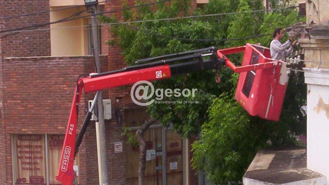 Personal de sección Iluminación trabajó este lunes en la reposición del cableado de la red eléctrica que alimenta el alumbrado público en la zona de las calles Careaga y Cerrito en Mercedes.