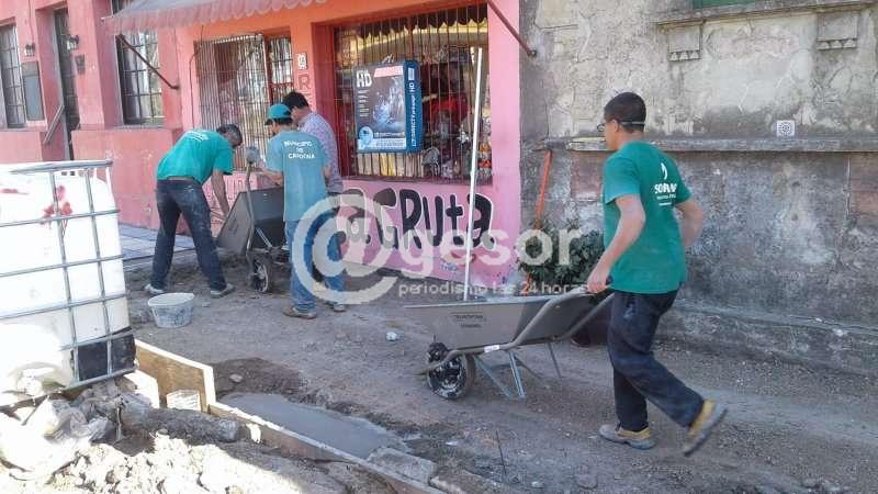 La primera etapa de las obras dio comienzo en calle Barboza, donde se ha procedido a levantar el pavimento de las aceras que se está en mal estado, continuando con colocación de las primeras baldosas luego de hacer el contrapiso correspondiente.