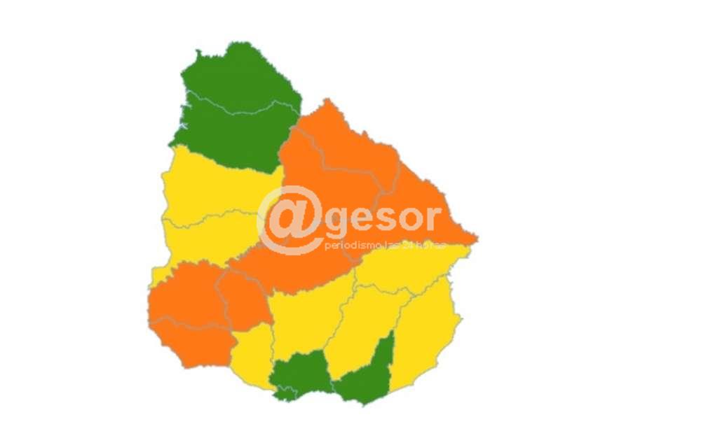En horas de la tarde, dicha alerta se extendió hacia el oeste, concretamente a los departamentos de Tacuarembó y Ri...