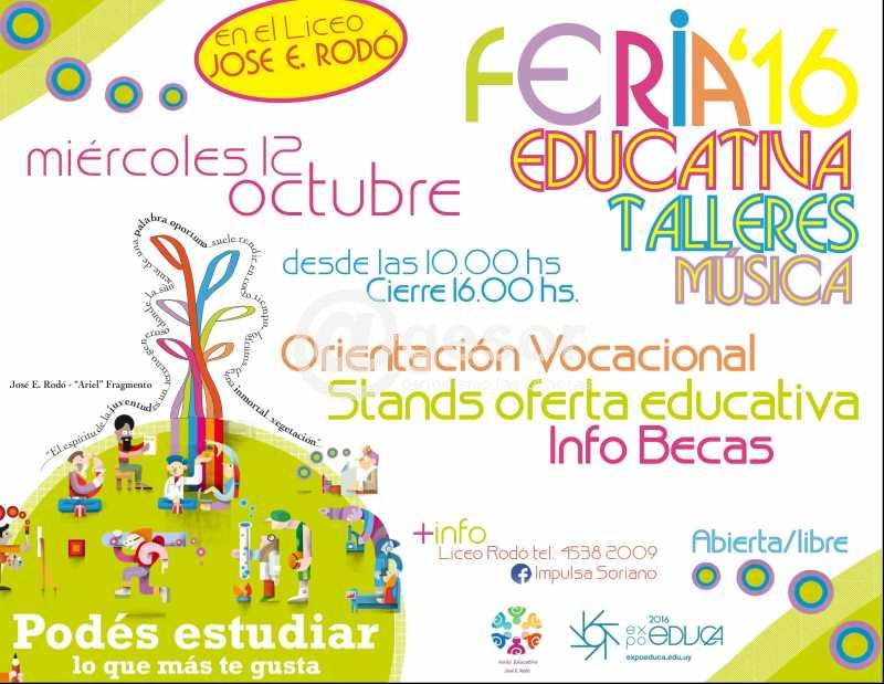 Desde el Mides Soriano se está invitando a participar de la Feria Educativa que se realizará este miércoles 12 en el Liceo de José E. Rodó.
