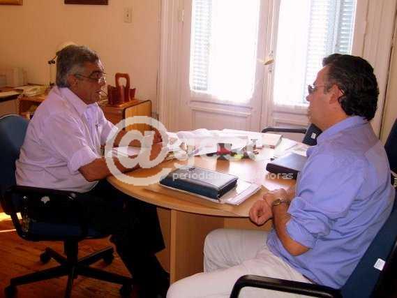 El edil del Partido Comunista de Soriano, Antonio Benítez, durante la reunión que mantuvieron los Intendentes de Soriano y Río Negro con autoridades de UTE en salón de la comuna sorianense, mantuvo diálogo con el rionegrense Omar Lafluf, recordándole la invitación que tenía pendiente de cum...