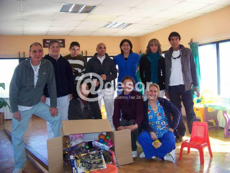 Integrantes del plantel de fútbol 5 del Hospital "Zoilo Chelle" que realizaran jornada de recreación y solidaridad en el gimnasio del club Olímpico, cumplieron en el Día del Niño, de entregar a los niños internados en dicho nosocomio los juguetes y demás regalos recibidos durante el espectá...